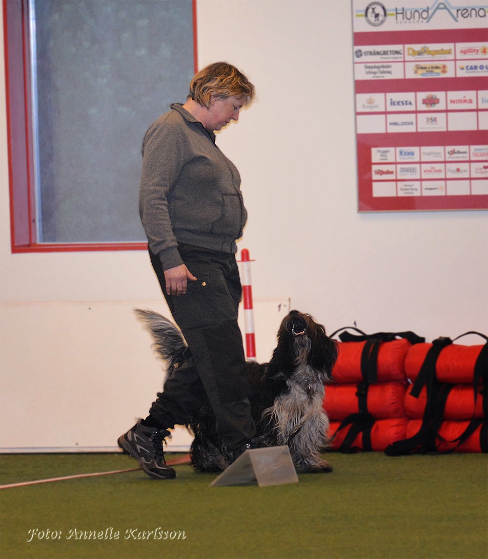Högerhandling är inte vår starka sida och det kändes lite haltande i början! Backa på höger sida blev någonting annat men annars gick det skapligt! Hon nosade på nummerskyltarna, annorlunda än vi sett förut, var lite sned och lite sen! Däremot var hon klockren i honnören som var ligg framför! I slutänden visade det sig att vi i allafall hade fått ett kvalificerande resultat! 78 poäng och 14 plats av närmare 40 startande! Flesta minuspoängen hade vi på backa-momentet! Annars var det 3 nos, 1 sen, 1 bris och konstigt nog 1 rör i honnören! Jag är jättenöjd med insatsen för idag var hon inte rädd och ofokuserad! Domarens kommentar var: Härlig energi och glädje!